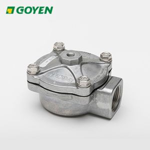 High performance diaphragm valve with threaded ports. Available with integral pilot or as remotely piloted valve. Outlet at 90° to inlet.